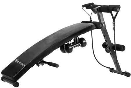 O banca de sport multifunctionala ar trebui sa existe in fiecare casa! Banca este cunoscuta ca fiind foarte buna pentru executarea exercitiilor pentru abdomen. Perfect adevarat! Insa, aceste banci sunt extrem de utile si pentru altfel de exercitii. Stiati ca la aceste banci poti antrena si bratele, spatele si picioarele? Este dotata cu doua gantere de 1.5kg si suport pentru ele direct pe banca.