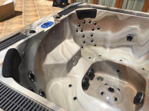 Modelul de minipiscina SPA-308 incastrabil „cafea cu lapte” are o lungime de 222cm, o latime de 222cm, iar inaltimea este de 100cm. Piscina este finista cu acril sanitar antibacterian si este perfecta pentru un numar maxim de 7 persoane! Volumul de apa cu care poate fi incarcata aceasta piscina este de 1100 litri, existand desigur si un sistem de overflow, care previne risipa de apa. Pe sezutul fiecarui loc sunt dispuse in cerc 12 jeturi de aer. De asemenea, va puteti bucura si de 36 de jeturi unidirectionale.