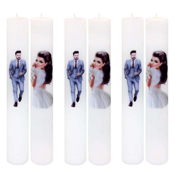 Set 6 Lumanari Nunta Mire si Mireasa cu orhidee H40cm D4,5cm
